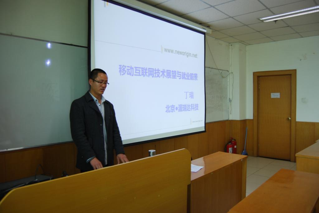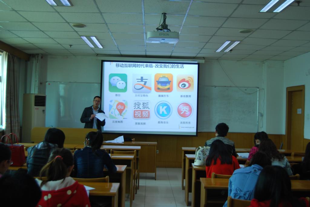 首先,丁瑞先生用生动的语言、鲜明的事例围绕当前移动互联网技术的现状、大学生在此方面的就业前景进行了深入的讲解,希望毕业生能认清形势、把握机遇。之后,同学们观看了该公司成功案例的视频,并就关实训的具体内容进行了讨论,大家各抒己见,积极讨论,气氛热烈。最后,丁瑞老师给大家提出几点就业指导意见:树立职业精神,建立目标意识、规划意识;培养责任感,做新时代的“四有”新人。