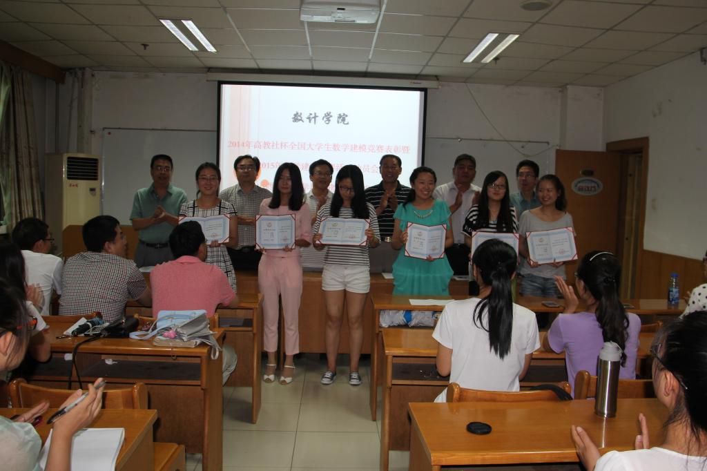 首先,竞赛负责人范青龙作数学建模活动总结。他强调,竞赛有利于激发同学们的学习积极性,开拓知识面,提高选手独立思考和分析问题的能力,为将来更好地走上社会,服务社会打下更为坚实的基础。在2014年建模比赛中,我们学院取得了骄人的成绩,在参赛的18支队伍中,有两个队伍在三天三夜的艰苦拼搏中分别获得国家一、二等奖,一个队获得省级一等奖,四个队获得省级二等奖,两个队获得省级三等奖。