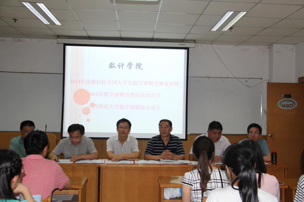 6月15日晚7点,数计学院2014年数学建模竞赛表彰暨竞赛动员大会在科学会堂A710举行。院党委书记王成喜,院长史建红,党委副书记张珂,副院长朱红康、安立坚等出席会议,大二大三部分学生参加会议。会议由党委副书记主持。