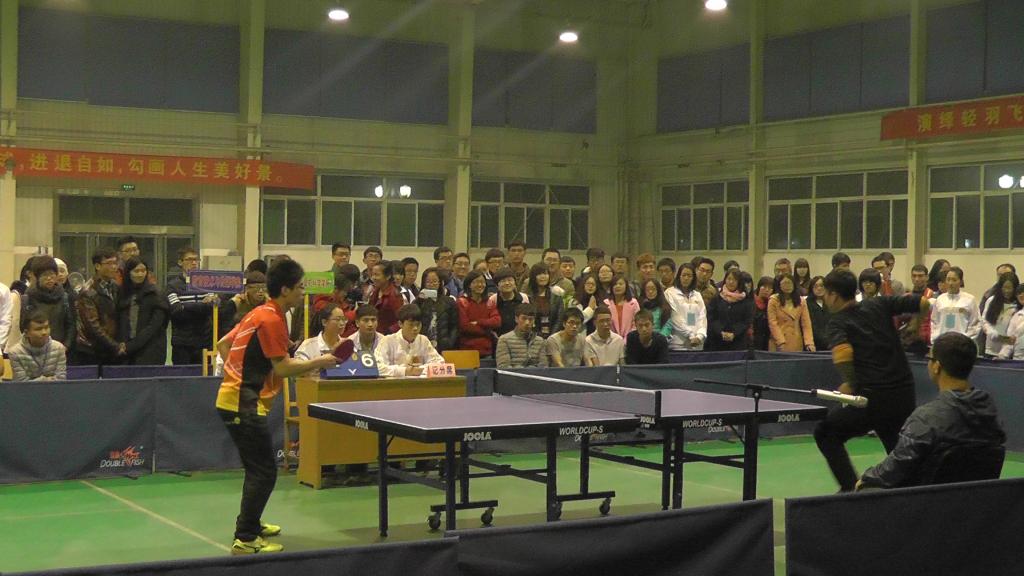 为了丰富同学们的课余生活,加强乒乓球技术的交流,培养同学们敢打敢拼的精神,2015年12月6日下午四点,由澳门网投官方网站举办的乒乓球决赛在学生文化艺术活动中心隆重举行。我院与传媒学院展开了激烈而又精彩的对抗赛。