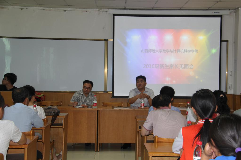 会议中,首先,张书记代表学院向各位新生家长的到来表示热烈的欢迎与衷心的感谢,随之介绍了我院历史沿革、办学理念、教学成就以及学生管理的基本情况。接着,副院长朱红康就我院的淳厚学风、品牌专业、学科特点三个方面进行了解说。之后,副院长安立坚向学生家长们阐述了科研与研究生、教学的关系。最后,广大家长就学生专业学习、实习就业、校园生活等各方面进行了提问,学院领导一一耐心作了详细解答,家长纷纷表示,通过交流,对山西师大和数计学院有了更进一步的了解,把孩子们交给这样一所团结奋进的大学和学院,他们很放心。本次会议在家长热烈的掌声中圆满结束。