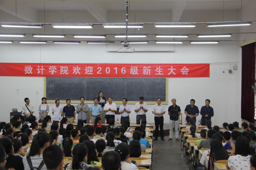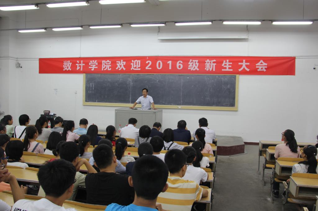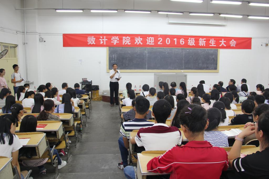 9月10日上午8点半,数计学院在05103举行2016级新生见面会。院党委书记王成喜,院长、院党委副书记、硕士生导师史建红,院党委副书记、学工组组长张珂,副院长邢进生、安立坚、朱红康等学院领导以及各系主任,新生辅导员和2016级全体新生参加了大会。见面会由院党委书记王成喜主持。