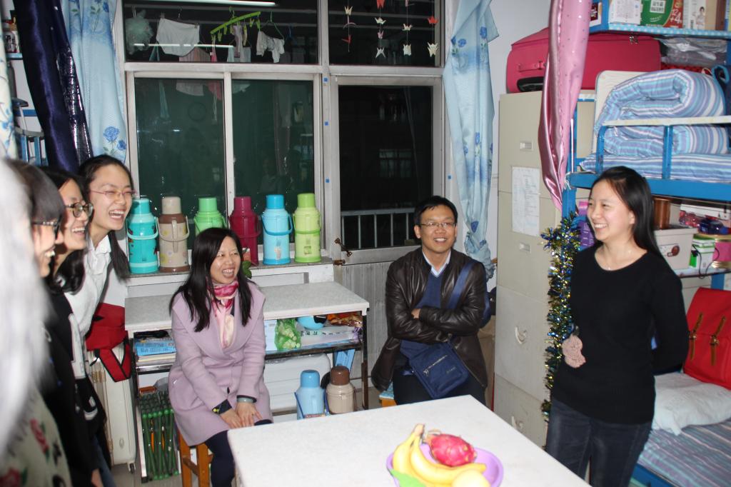 为进一步了解学生的社区生活环境,掌握学生思想动态和实际需求,加强学院对宿舍的管理,2017年3月10日晚,我院党委书记郝红霞、院长史建红、副院长朱红康、副院长安立坚、团委书记陈立记和办公室主任贾静一行,赴新松公寓学生社区,随机走访我院学生宿舍,并与宿舍学生开展座谈、调研活动。