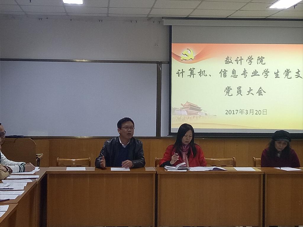 为了加强“两学一做”学习教育,认真开展专题组织生活会和民主评议党员工作,根据校党委统一部署和学院党委的具体安排,加强基层党组织建设,增强党员党性修养,查摆支部建设现存问题,公平公正民主评议党员,数计学院计算机、信息专业学生党支部在前一阶段认真筹备、充分调研的基础上,于3月20日晚7时,在科学会堂A710报告厅开展支部专题组织生活会和民主评议党员大会,院党委书记郝红霞,院党委副书记、院长史建红,院党委委员陈立记、杨浩菊以及支部全体党员参加了会议,会议由支部书记陈立记主持。