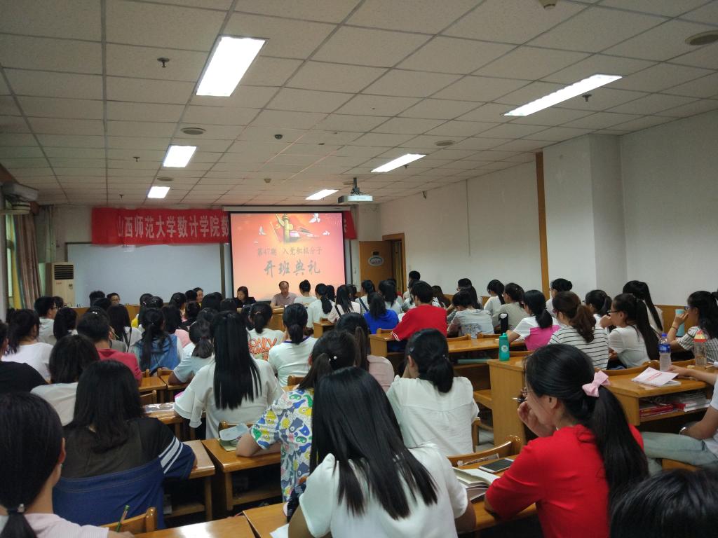 2017年5月20日晚7点,数计学院在科学会堂A710报告厅举行第四十七期入党积极分子培训班开班仪式。院党委书记郝红霞、支部书记陈立记、贾静以及84名入党积极分子参加了开班仪式,开班仪式由陈立记老师主持。