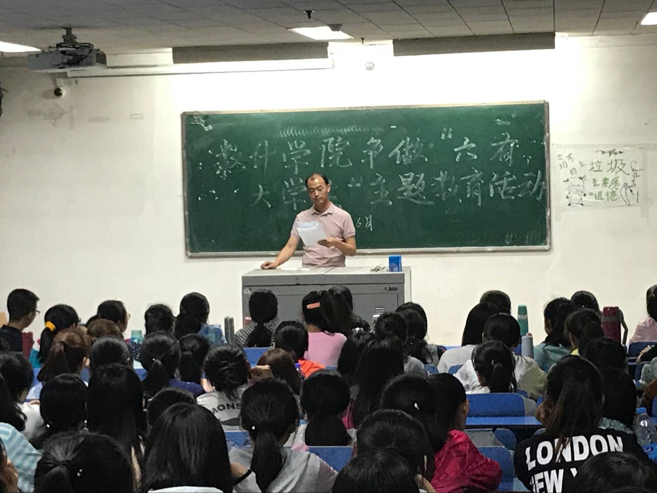 为深入学习贯彻习近平总书记系列重要讲话精神,增强我院青年学生思想教育工作的针对性和时效性,6月5日晚9点我院在11113教室开展了争做“六有大学生”主题教育活动。我院团委书记陈立记驻校蹲班两个班级,1503班、1504班全体同学参加了此次活动。