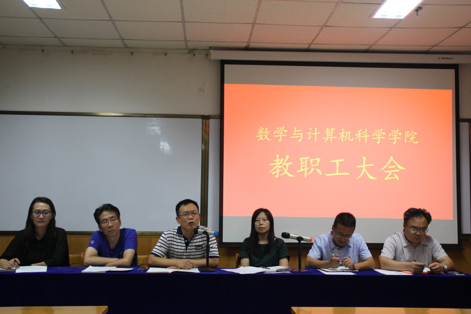 9月7日晚7时,数计学院在科学会堂A710报告厅召开全体教职工大会。会议对前一阶段工作进行了深入总结,对新学期的各项工作进行了全面部署。党委书记郝红霞、院长史建红、党委副书记杨亚东、副院长朱红康、安立坚、王洁以及全体教职工参加了本次大会。会议由副院长王洁主持。
