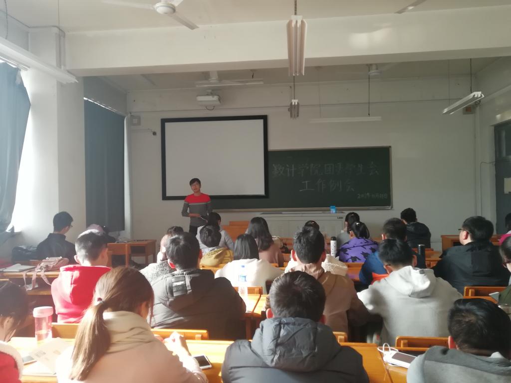 11月21日12点30,数计学院团委“不忘初心,继续前进”团学骨干教育培训会在7号楼213教室举行。我院团委书记张笑迷主持会议,团委学生会干部、各团支部书记参加。