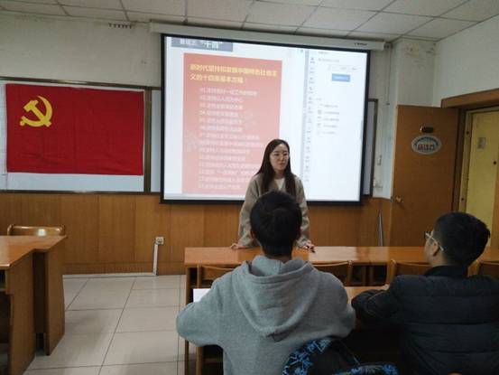 学习交流会上,学生党员结合专业特色,用数字解读十九大报告内容,通过“大数据看报告中备受关注的“新提法”、“数说十九大报告”、“数说报告词频变化”、“十九大报告中你最关心的11件事”等主题汇报展示,分享近期学习内容和心得。