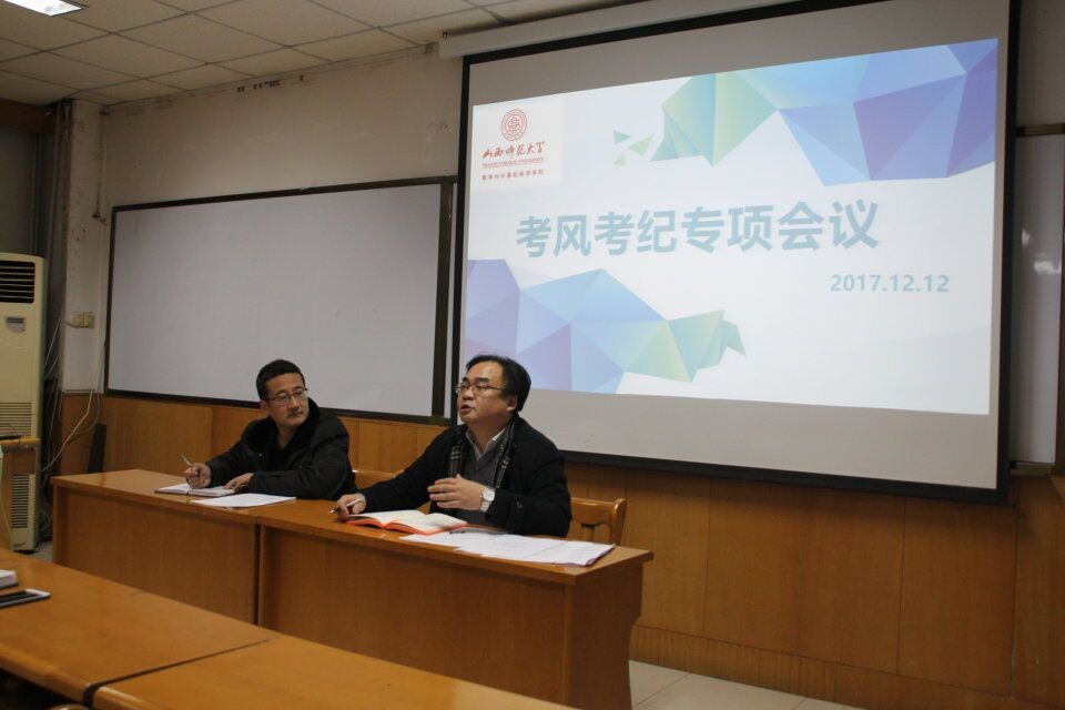 会议上,副院长朱红康传达了第七次院长工作例会上关于开展“考风考纪专项教育活动”的精神,细致解读了《关于开展考风考纪专项教育活动的通知》和《山西师大考试纪律与违纪处理规定》两份学校文件,结合我院近年考试中出现的一些问题,强调严肃考风考纪的重要性,明确提出了学院考风考纪教育活动的具体要求,要求各班辅导员召开诚信考试主题教育班会,认真学习学校相关管理规定,做好诚信考试教育,开展诚信考试签名,广泛开展学习经验交流会、学习小组、“一帮一”结对子等形式,帮助学习困难同学。
