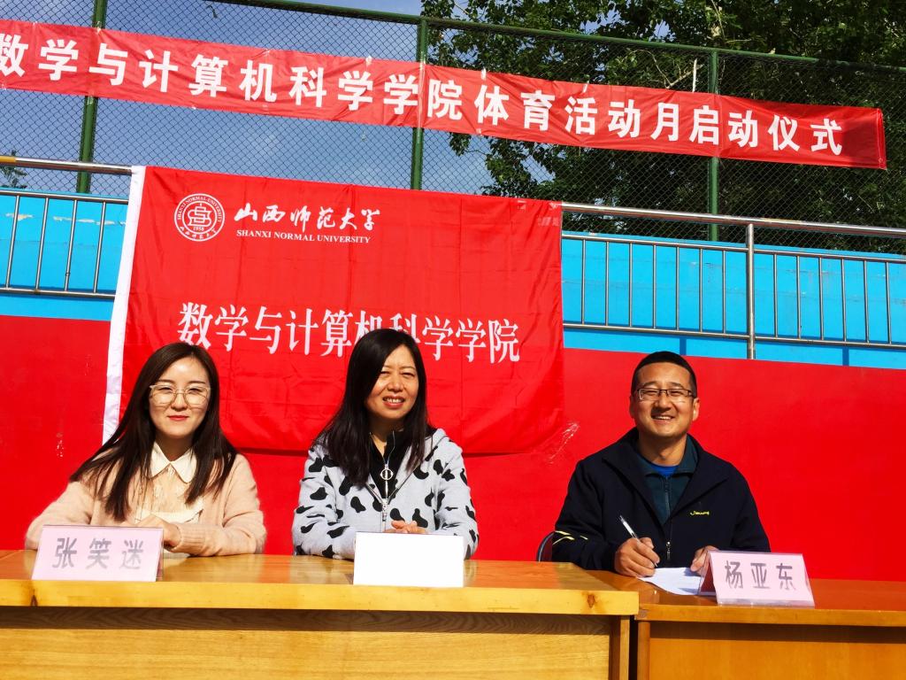 2018年4月15日上午,数计学院在灯光篮球场成功举办了体育活动月启动仪式。院党委书记郝红霞、院党委副书记杨亚东、团委副书记张笑迷出席活动,学院教职工体育运动队、学生体育运动队及各年级其他学生参加了本次仪式。