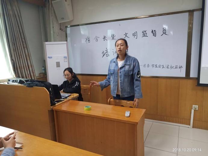 为了做好迎评工作,增强学生的安全意识,共建学生良好的学习和生活环境,10月20日上午9时,我院在科学会堂A710报告厅举办了宿舍长暨文明监督员培训会。