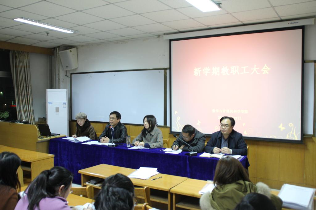 2月27日晚7时,数计学院在科学会堂A710报告厅召开全院教职工大会。院党委书记郝红霞,院长史建红,院党委副书记杨亚东,副院长朱红康、王洁出席会议,全院教职工参加。会议由院党委副书记杨亚东主持。