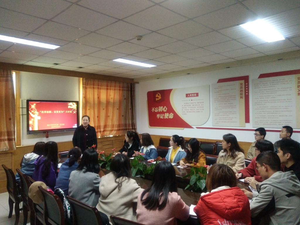 支部书记贾静向支部党员传达了2月27日院党委书记郝红霞在学院召开的“改革创新、奋发有为”大讨论动员部署会议上的讲话精神,带领支部党员详细学习了《数学与计算机科学学院关于开展“改革创新、奋发有为”大讨论的实施方案》。她要求党员,一要明确“改革创新、奋发有为”大讨论的意义,抓住主要任务,聚焦“六个破除”;二要大胆解放思想,积极主动求新;三要坚持问题导向,把自己摆进去,主动查找自身短板;四要以身作则,注重发挥党员作用。