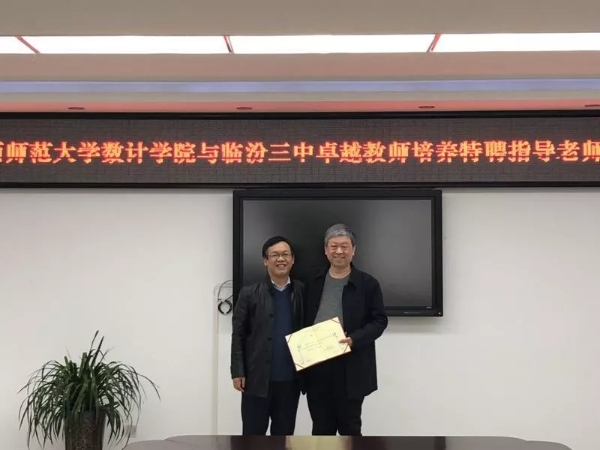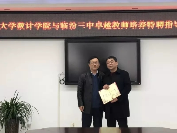 会上,史建红院长、朱红康副院长、刘生芝老师与临汾三中王纯林副校长、李民生主任、徐建农老师、董李平老师进行了座谈,双方就协同培养模式、互助合作等方面达成一致意见,史建红院长向临汾三中两位特级教师颁发了聘书。