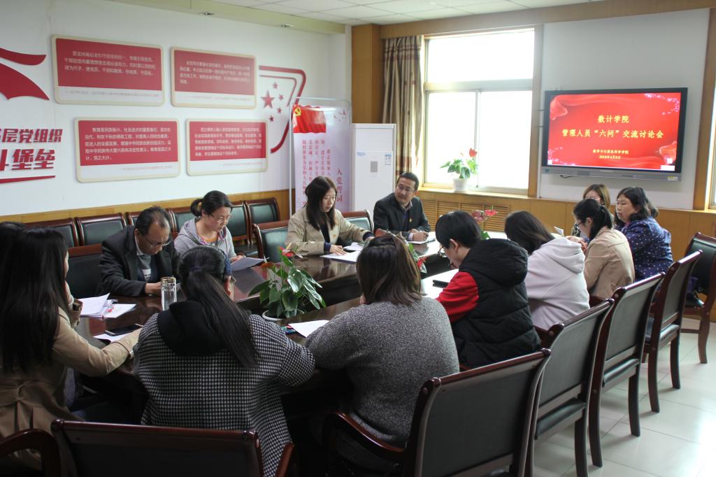 4月9日下午4时,数计学院在科学会堂A705会议室召开管理人员“六问”交流讨论会,学院行政、教辅人员参加会议,会议由院党委书记郝红霞主持。