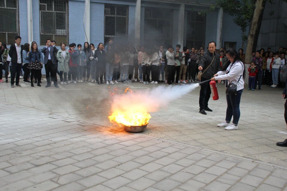 全体学生到达消防安全演练场,消防科同志现场给同学们讲解火灾知识和灭火器使用要领。结合火灾案例,他重点讲解了消防安全常识及在火场中易出现的一些逃生误区和正确的逃生自救方法,解释了火灾防控“三字经”和“四进一考一测一平台”的内容,鼓励大家使用校园安全隐患“随手拍”微信推送平台,共同维护校园安全稳定。讲解结束后,消防科同志模拟火灾,点燃明火,演示了干粉灭火器和二氧化碳灭火器现场灭火。随后,多名同学们踊跃参与,实际操作灭火器现场灭火。