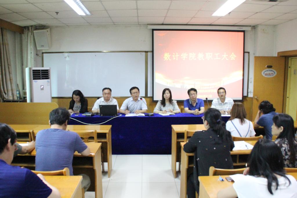6月21日下午4时,数计学院在科学会堂A710报告厅召开全院教职工大会。院党委书记郝红霞,院长史建红,院党委副书记杨亚东,副院长安立坚、朱红康、王洁出席会议。会议由院长史建红主持。