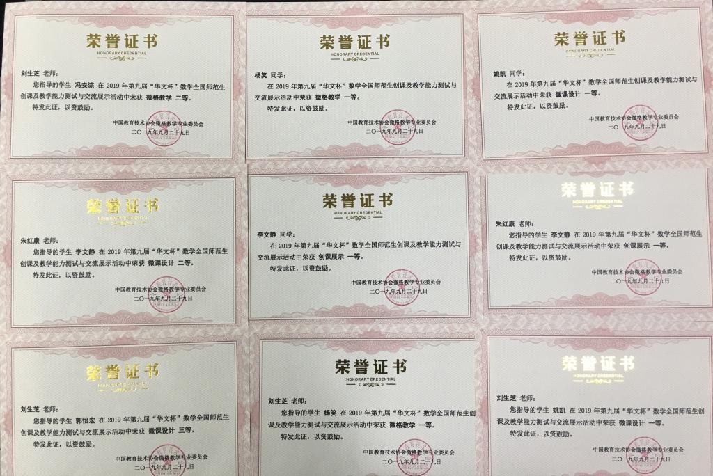 我院学子在第九届“华文杯”数学全国师范生创课及教学能力测试与交流展示活动中喜获佳绩