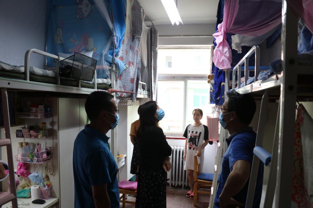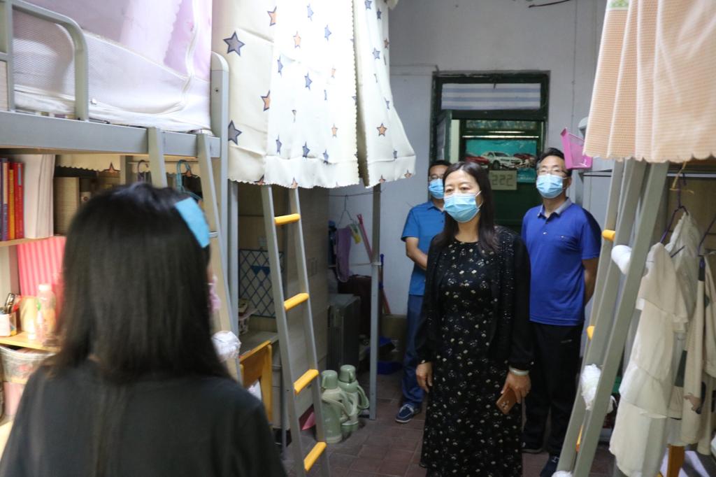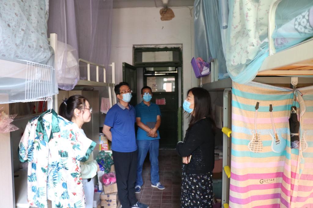 6月17日下午,我院党委书记郝红霞、党委副书记杨亚东、副院长安立坚一行深入宿舍,与学生亲切交流,了解学生返校后的思想和心理动态,排查宿舍安全隐患,积极回应学生关切,切实做好疫情防控常态化工作和“安全生产月”专项检查工作。