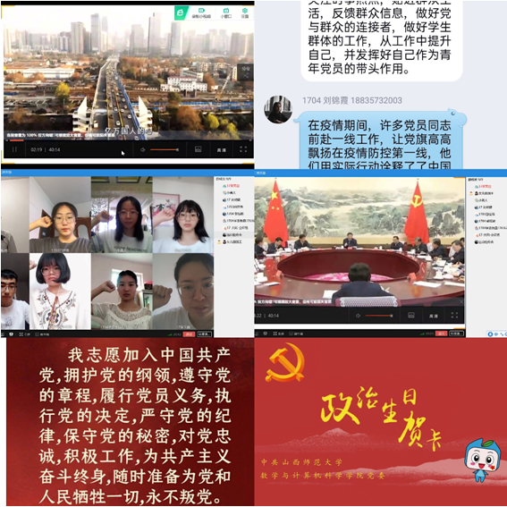 学生党员线上交流了观影心得。学生第一党支部党员苏文娟表示切身感受到了社会主义集中力量办大事的制度优势,通过党的坚强领导,为打赢疫情防控阻击战提供了坚强政治保障。各级党组织和广大党员冲锋在前,形成了疫情防控的中坚力量。