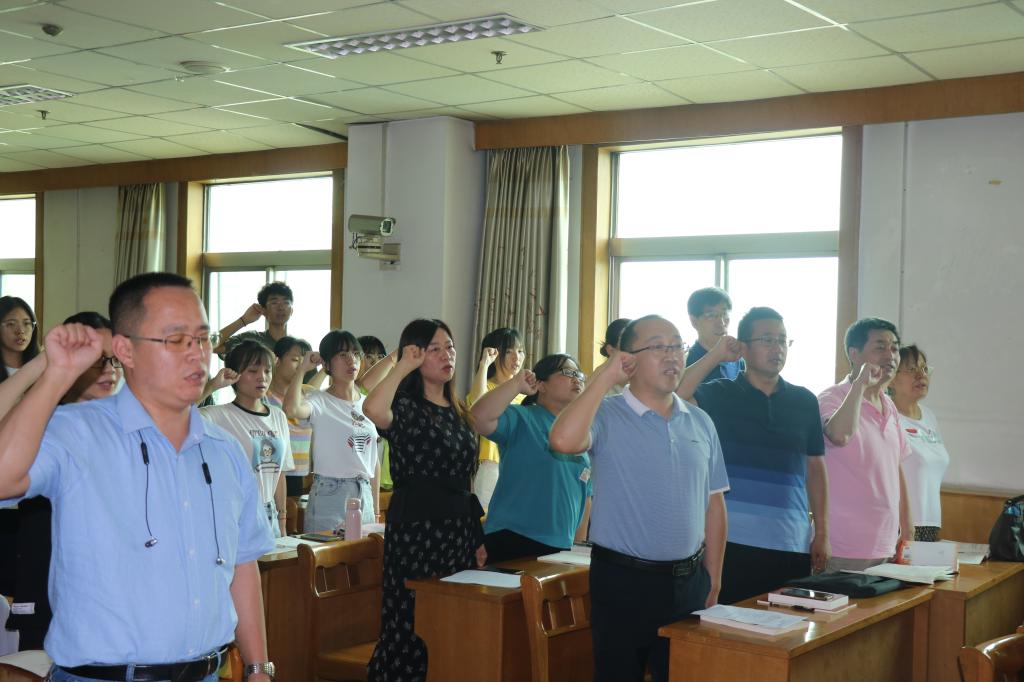 面对鲜红的党旗,全体党员举起右手,在学生第三党支部书记王琛的带领下重温入党誓词。铿锵恢宏的誓词体现了对中国共产党的无限忠诚和为共产主义事业奋斗终身的坚定决心。随后师生党员一起观看了《常州三杰:恽代英》党史学习纪录片,党员们纷纷表示要坚定共产主义的理想信念,向恽代英这样老一辈的革命先烈学习,自觉地为共产主义事业奋斗终身;最后教工党员与学生党员就学业指导、考研规划、学科竞赛活动指导等内容展开讨论交流,教工党员们坚持党建指导实践,把“我为群众办实事”实践活动与立德树人同频共振,在学党史,悟思想,办实事中勇于担当,尽职尽责。