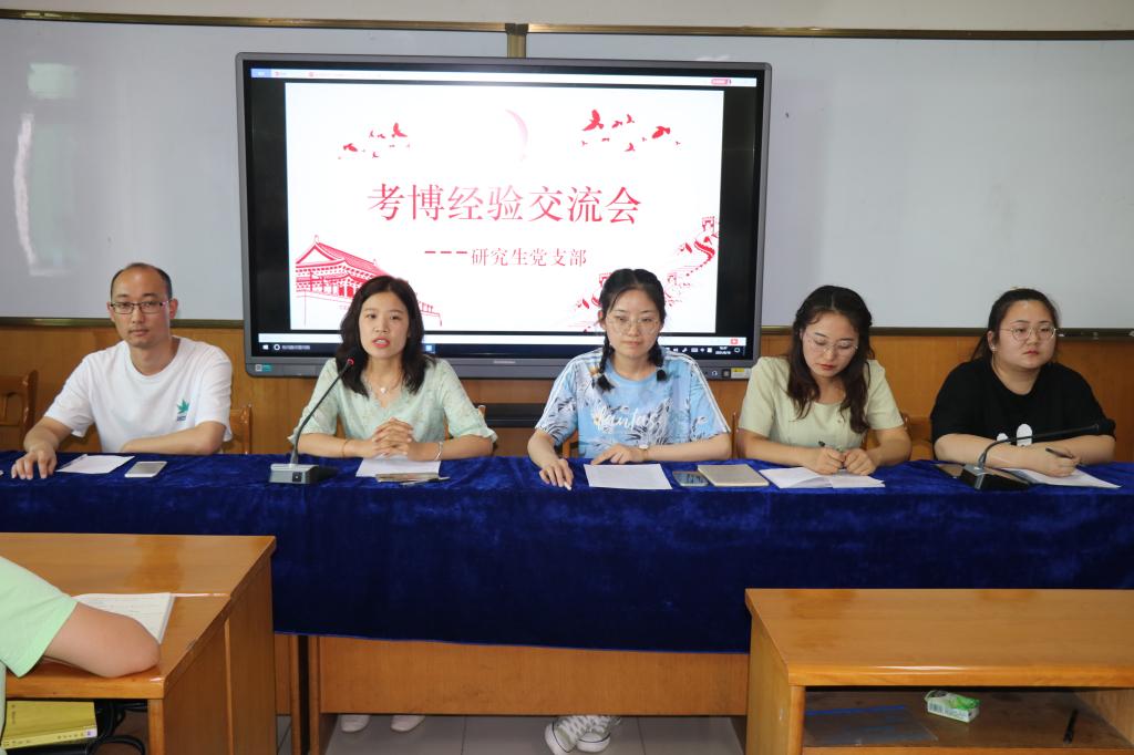 6月18日下午16:30,研究生支部在科学会堂710举办考博经验交流会。5名成功考取博士的党员同学向同学分享了学习经验,研一和研二60余名学生参加了交流会。交流会由学院党委副书记杨亚东主持。