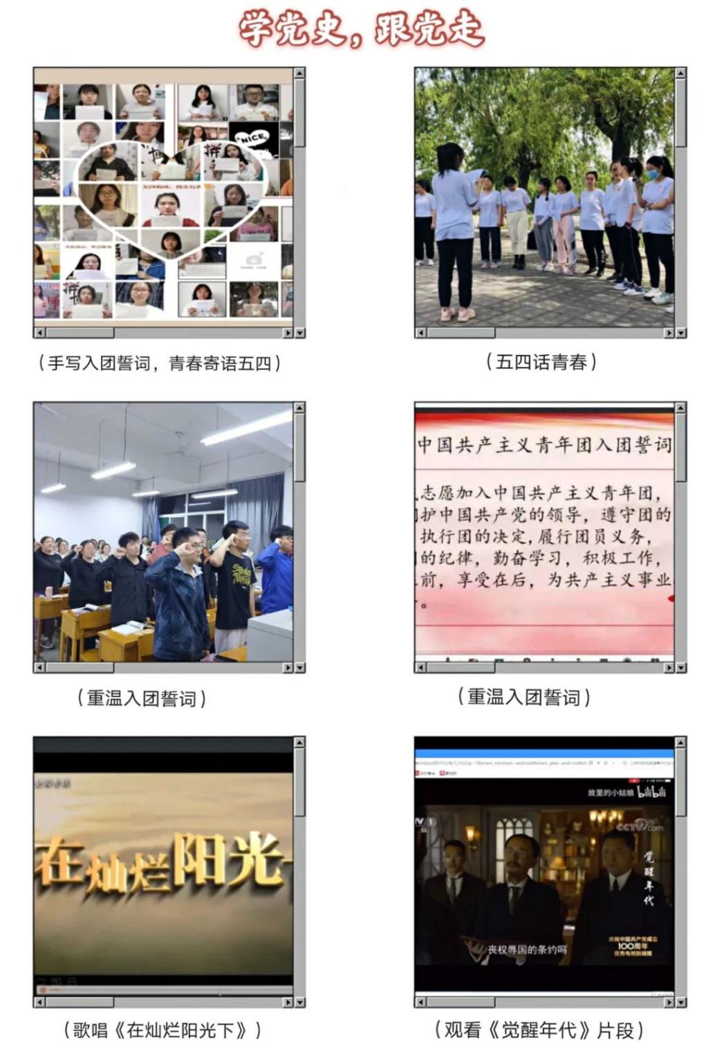 5月1日——5日,数计学院团委组织各团支部开展了形式多样的“弘扬五四精神,学党史跟党走”主题团日活动,教育引导青年学生学习党的光辉历史、传承和弘扬“五四”爱国精神,激励广大青年学生坚定理想信念。各团支部通过重温入团仪式、观看《觉醒时代》节选片段、朗诵《少年中国说》、歌唱《在灿烂阳光下》等方式,深入地学习了五四时期的历史,了解了五四精神的内涵。各支部团员积极参与了“五四话青春”活动,壮烈的英雄事迹深深地鼓舞了他们,他们纷纷表示要继承和发扬先辈们英勇无畏、迎难而上的精神,努力为中华民族伟大复兴做出自己的贡献。