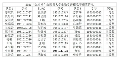 喜报|数计学院学生在2021年“金地杯”山西省大学生数学建模竞赛中喜创佳绩