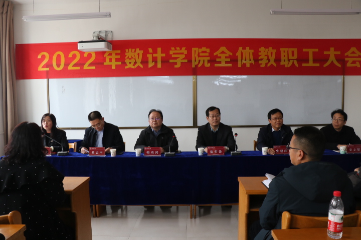 2月18日下午,数计学院在北区4号教学楼208召开新学期教职工大会。校党委副书记韩勇鸿、副校长范哲锋、组织部部长赵忠平、教务处处长史建红、数计学院党委书记郝红霞、院长安立坚、副书记杨亚东、副院长王洁及全体教职工参会。会议由院党委书记郝红霞主持。