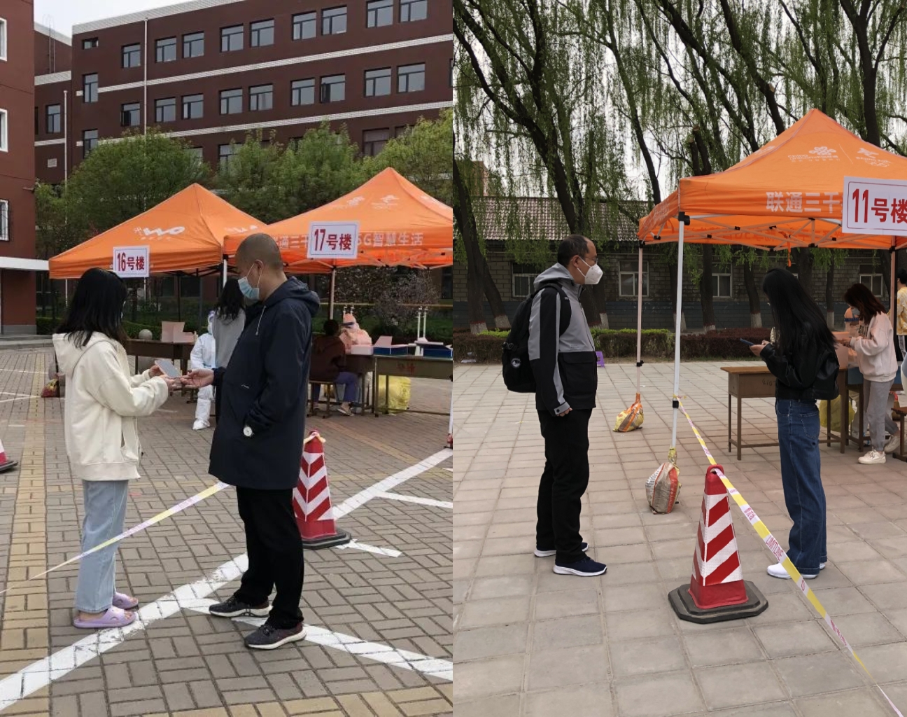 为了筑牢校园疫情防控安全线,我校本着“不漏一人”的原则,安排全校师生进行核酸检测。采样现场,学院领导和教职工志愿者身着防护服,引导学生保持一米距离,全程佩戴口罩,协助医护人员进行采样。