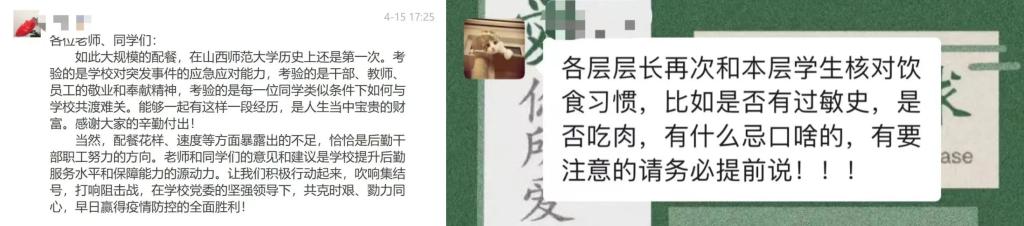 把关怀做到点滴小事里,把温暖送到学生心中。同时,各位同学也纷纷表达了自己对老师,志愿者以及医护人员等的感谢。我们”双向奔赴“,积极配合各项工作。