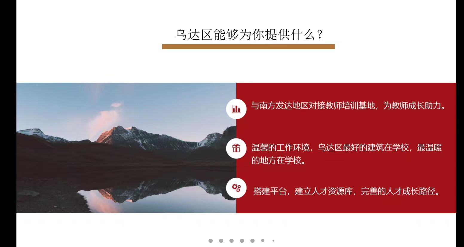 乌达区教育局工作人员从发展前景、人才招聘条件、教师岗位培训、应聘流程以及薪资福利等方面进行了详细介绍,同时结合当下就业形势分析了乌达区教育的诸多优势,耐心解答了毕业生们关于就业、地方政策和风土人情等问题,并鼓励大家抓住机会、积极应聘。