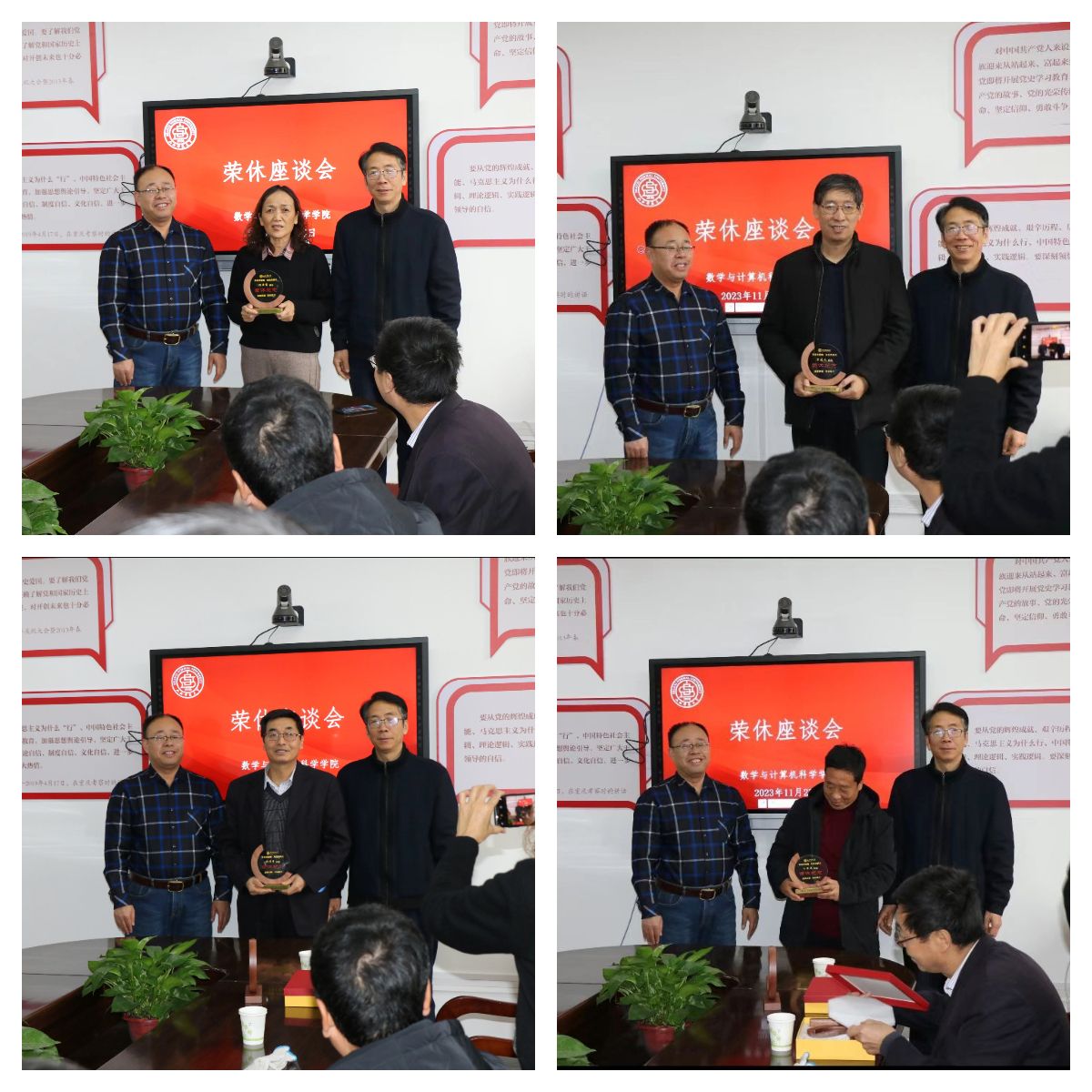 山西师大数计学院原院长、晋中师范高等专科学校校长史建红与我院院长安立坚对四位荣休教师在学院困难之际做出的贡献表示感谢,并真诚祝愿各位教师退而不休、老有所乐、健康长寿、阖家欢乐!