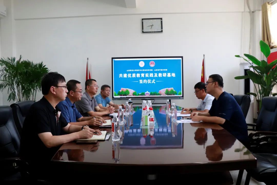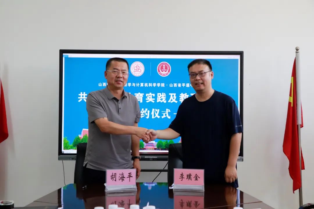 平遥中学“优质教育实践及教研基地”的建设,是我院在新的教育形式下全面落实立德树人教育理念和培养学生综合能力的重要举措,也是我院积极主动对接基础教育的重要成果。双方的深度合作,将为我院数学与应用数学专业和计算机科学与技术专业师范生提供又一个优质的教学实践技能训练平台,希望通过此次优质教育实践及教研基地的建设,双方在升学与就业、人才培养与教学创新、优质教育资源共享及数学与信息技术文化的交流等方面加强合作,为双方教育的快速发展奠定坚实的基础,更好地服务于山西基础教育事业。