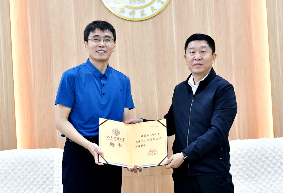 报告结束后,校党委副书记王志强在行政北楼二层接待室亲切接见了周进鑫校友,并为其颁发了客座教授证书。