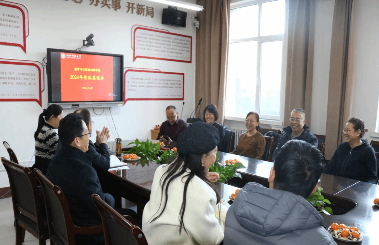 2024年12月26日上午,数计学院在北区四号教学楼202会议室召开数计学院2024年度荣休教师座谈交流会。学院党委书记孙学虎,院长安立坚,院党委副书记吴晓坤,副院长王洁,副院长王国涛,副院长李璞金,工会主席张军强,五位荣休教师、教师代表以及学生代表参加会议,座谈会由张军强主持。