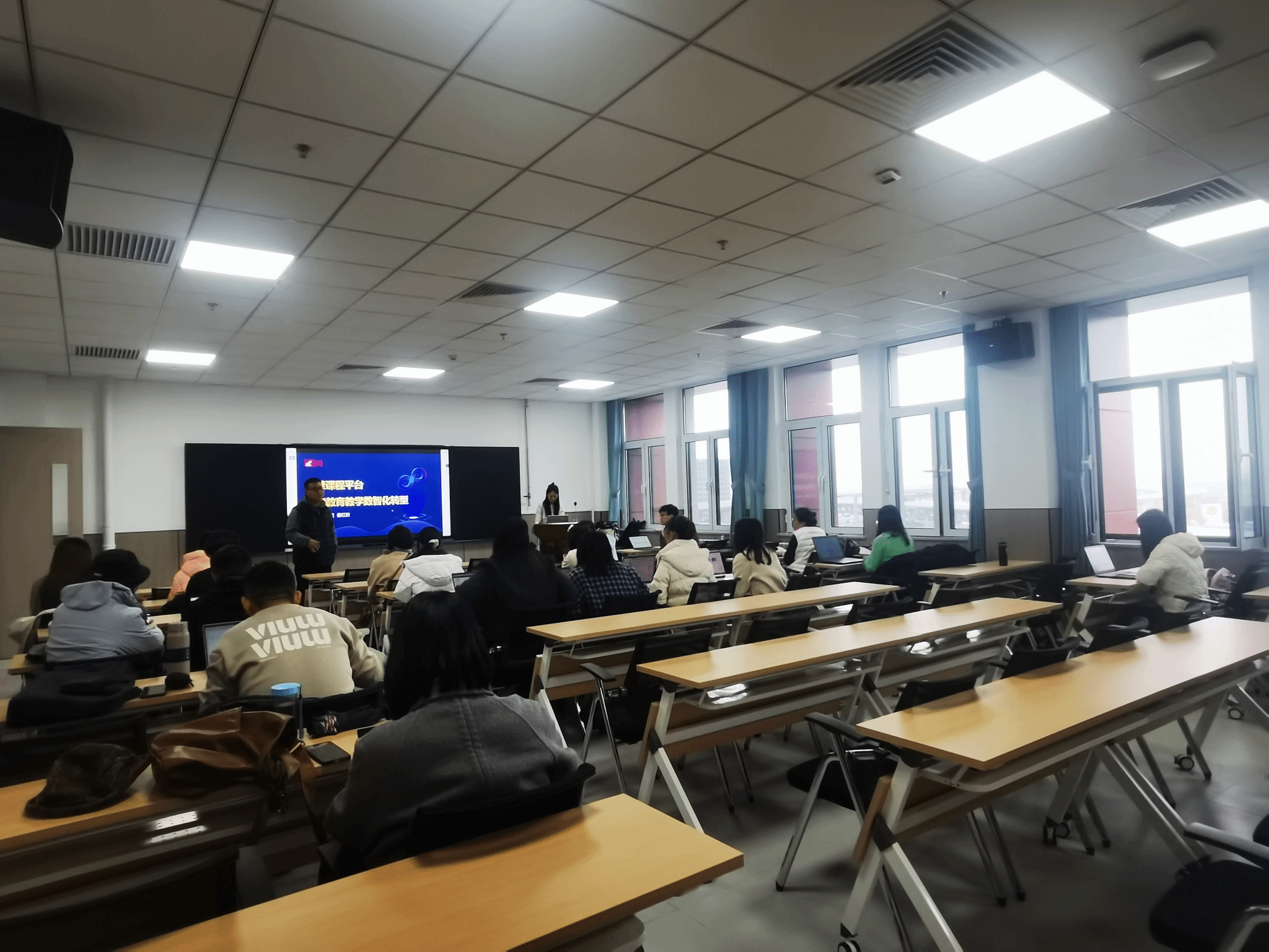 2025 年 11 月 7 日下午 14:30-16:00,我院在数理楼 B608 会议室顺利举办智慧课程建设培训。本次培训由山西超星数图教育科技有限公司和学院主办,学院教师积极参与,旨在响应教育信息化发展趋势,推动教学模式创新,尤其聚焦 AI 技术与课程建设的融合应用,助力教师提升智慧课程建设能力与 AI 辅助教学实践水平。