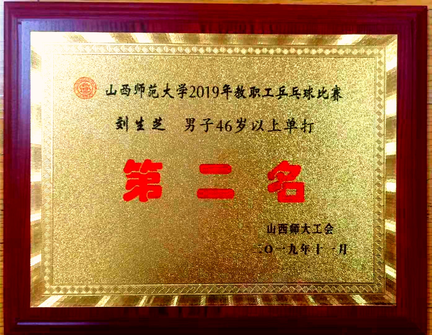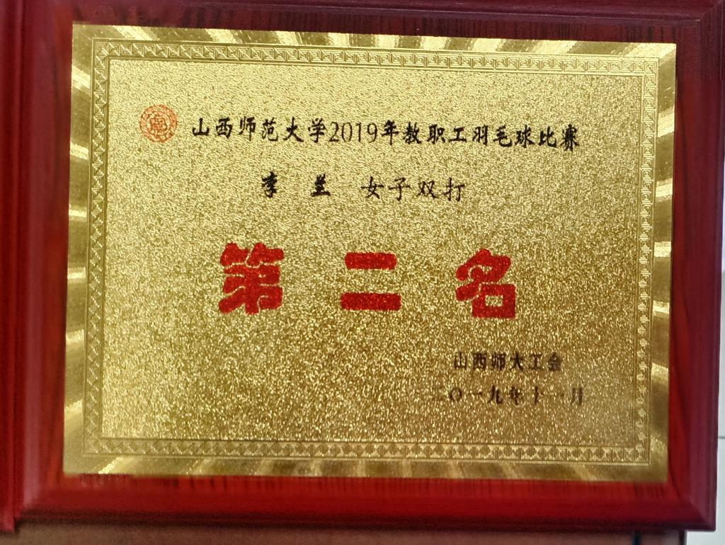 在校工会主办、体育学院公共体育部承办的2019年教职工乒乓球、羽毛球比赛中,刘生芝老师赢得乒乓球赛男子46岁以上单打第二名,李兰和王波老师赢得羽毛球赛女子双打第二名。