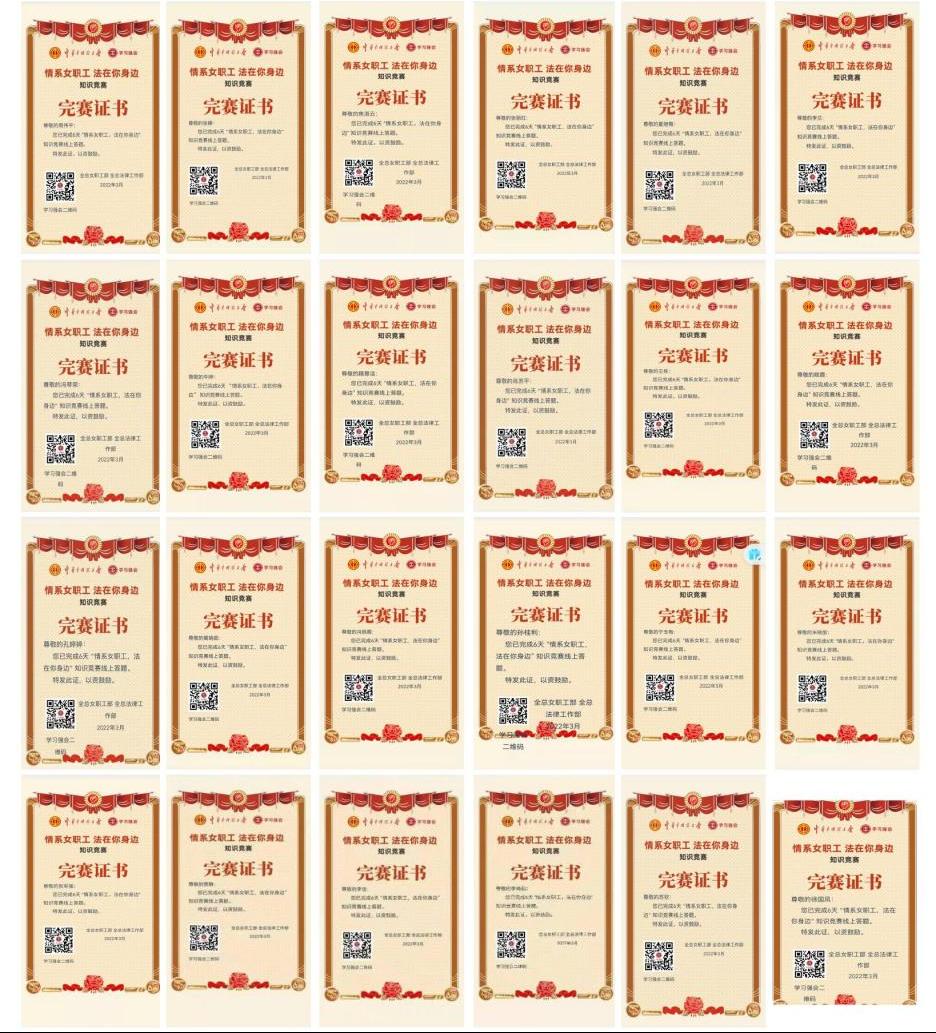 全院教职工积极响应号召,25名教职工获得“情系女职工,法在你身边”知识竞赛证书。此次竞赛活动的成功开展,增强了我院女职工的法律意识和维权能力,使女职工进一步明确了关乎切身的合法权益,强化了学法、懂法、用法意识;同时调动和鼓励了女职工的积极性,营造了关心爱护女职工的良好氛围。