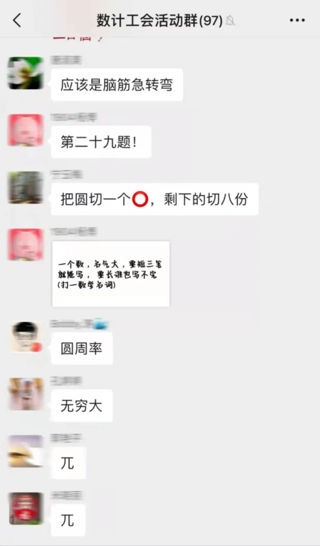 活动开始后,我院教师兴致勃勃地展开了竞猜,大家敏捷思考,踊跃答题,尽展数学魅力。群内气氛被老师们的活跃思维一次又一次的推向高潮,经过欢乐的比赛之后,我院老师过五关斩六将,享受到比赛的乐趣的同时也赢得了精美的奖品,每位老师都意犹未尽。