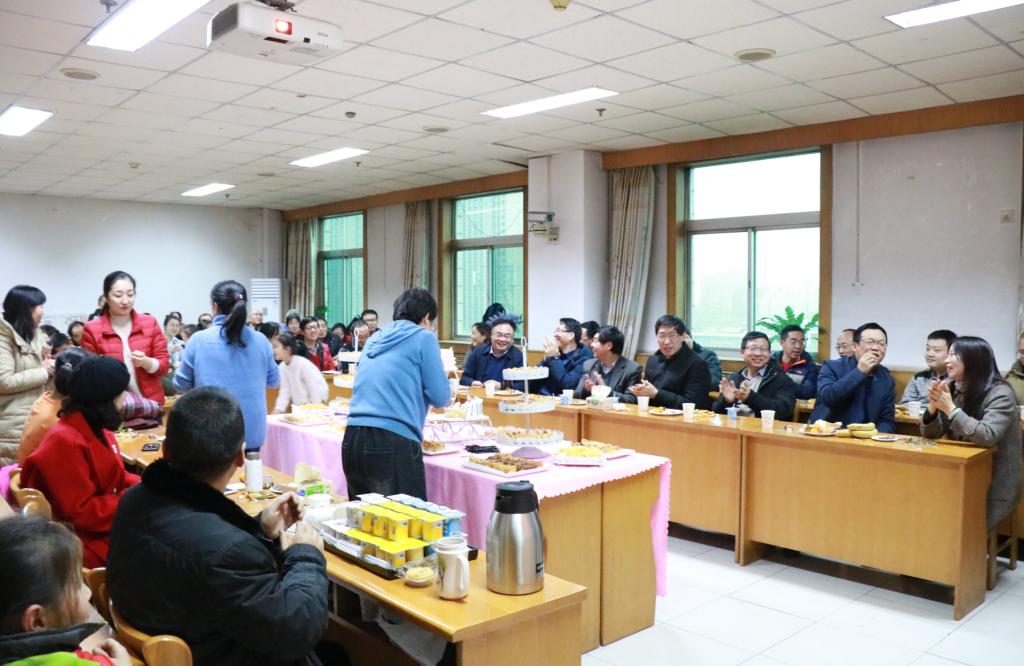 郝红霞书记和史建红院长共同切蛋糕,精心设计的蛋糕上分别写着“万物皆数”、“念念不忘,必有回响——SCI+基金”等字样,在甜美中蕴含着数学文化和老师们的新年心愿。老师们先后登台表演节目。小朋友们也带来了精彩的节目:T台走秀、葫芦丝和歌曲《新年好》,增添了喜庆,显示了数计大家庭的团结有爱。