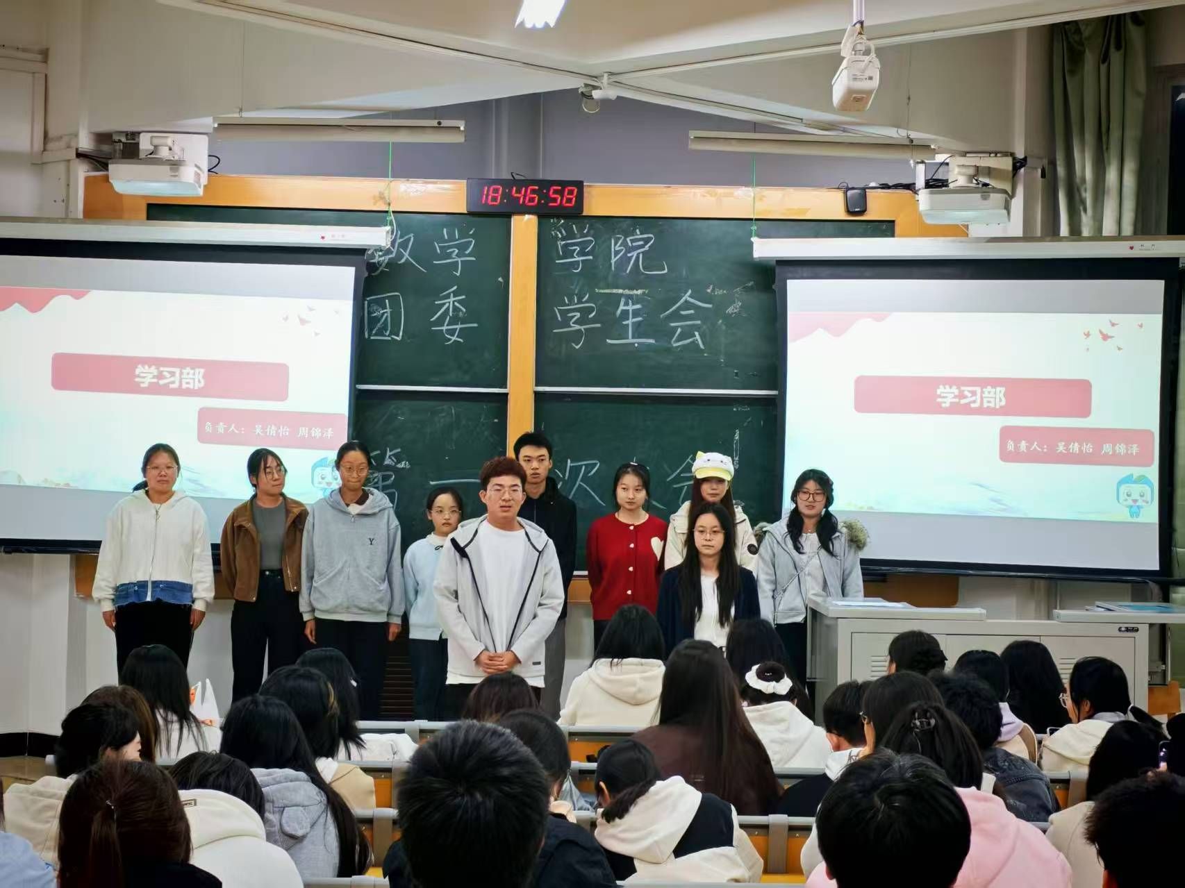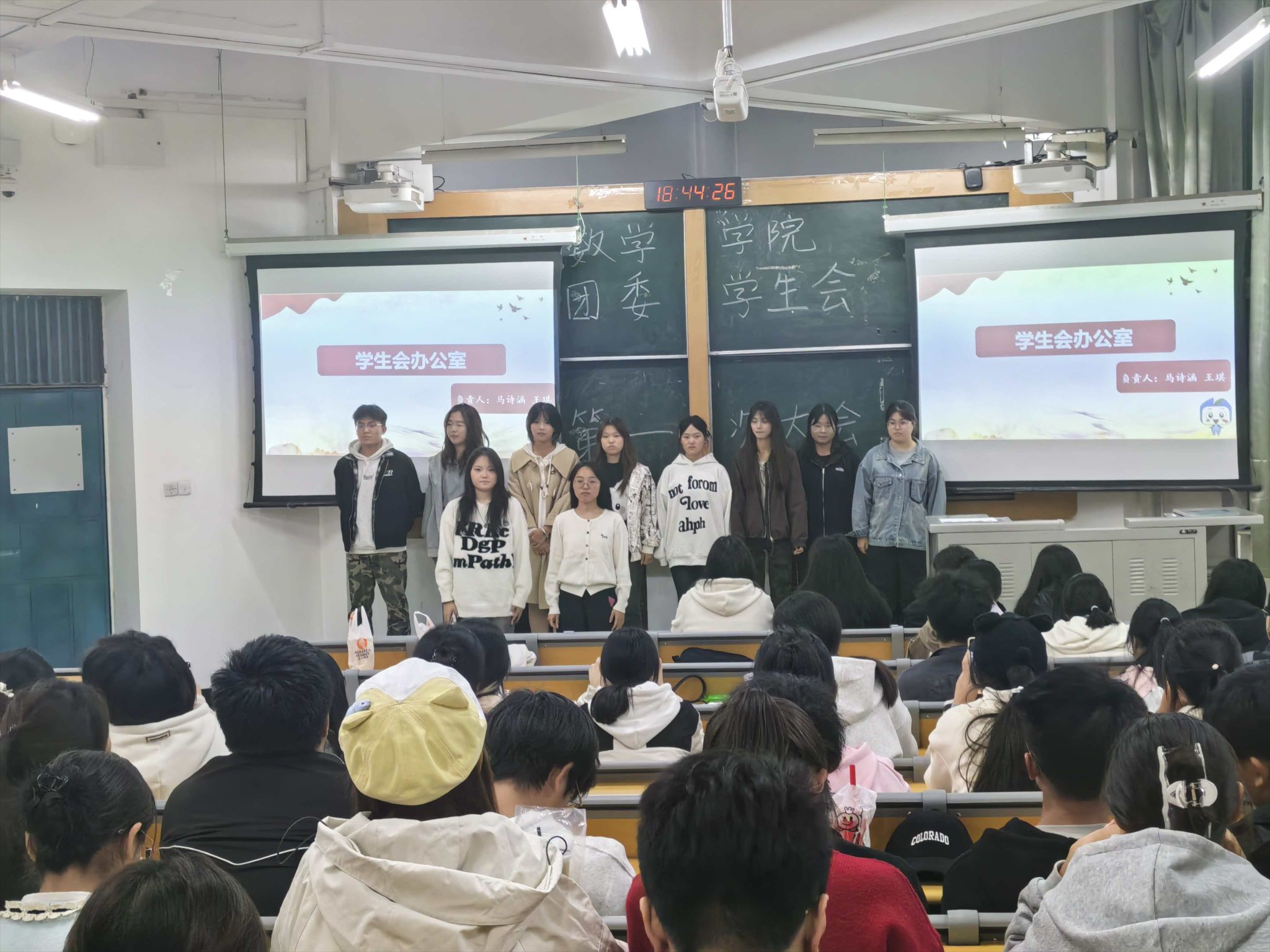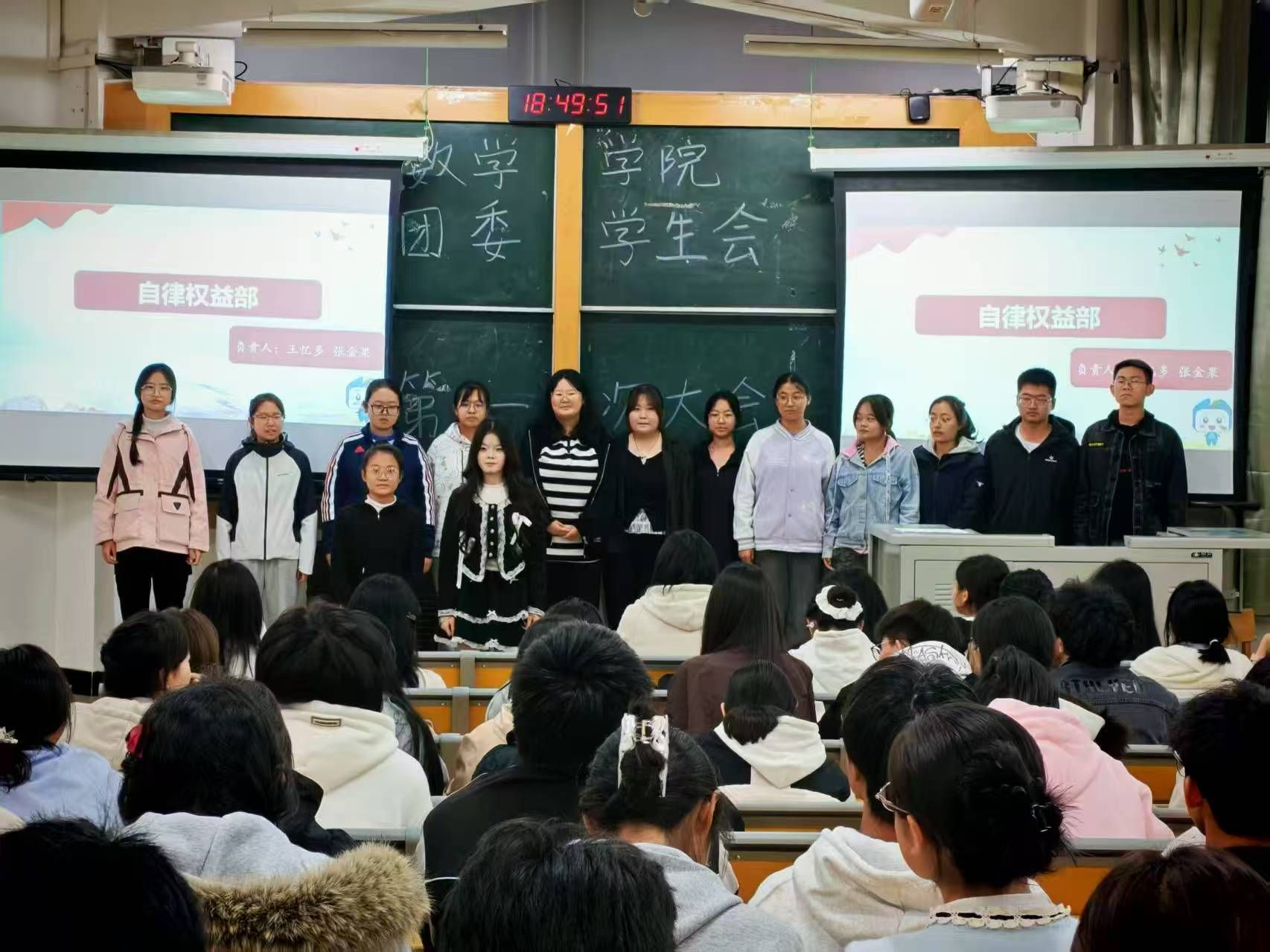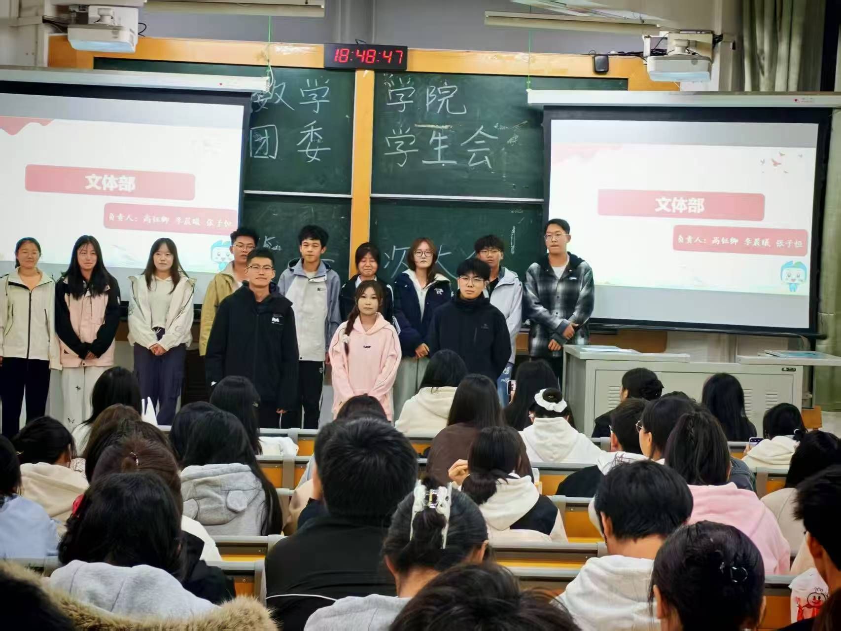 大会伊始,执行主席王子璇欢迎新晋成员、展示过往成果、勉励全体成员积极投入后续工作。之后的风采展示环节,各部门负责人与志愿者、各社团成员依次登台,介绍了自身职责与团队的核心职能,并充分展现了各团队的责任担当。随后,王子璇带领全体参会人员学习数学学院团委学生会规章制度,并详细向大家介绍了学分预警与学士学位授予的相关规定。